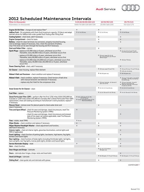 In 2010, the audi maintenance schedule. Between the forums and the factory. At 55,000 miles, replace the front v belt for the compressor drive. This beats the industry average for luxury sedan models by $2,452. Signal lights are built into both outside mirrors <=> fig.88.