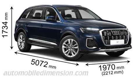 Check the vehicle dimensions for other. In configurations, audi q7 has a dimensions of 5064 mm in length, 1970 mm in width and 1703 mm^3 mm in height. The height, measured from the ground to the.